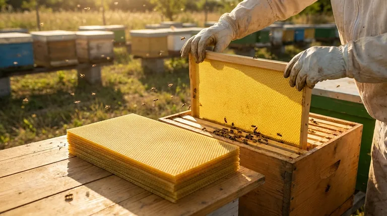 현대 양봉은 우아하고 단순한 도구인 밀랍 기초로 이 경제 문제를 해결했습니다.